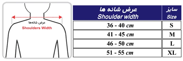 پیش از خرید وسیله به جدول انتخاب سایز بر اساس عرض شانهها توجه نمایید