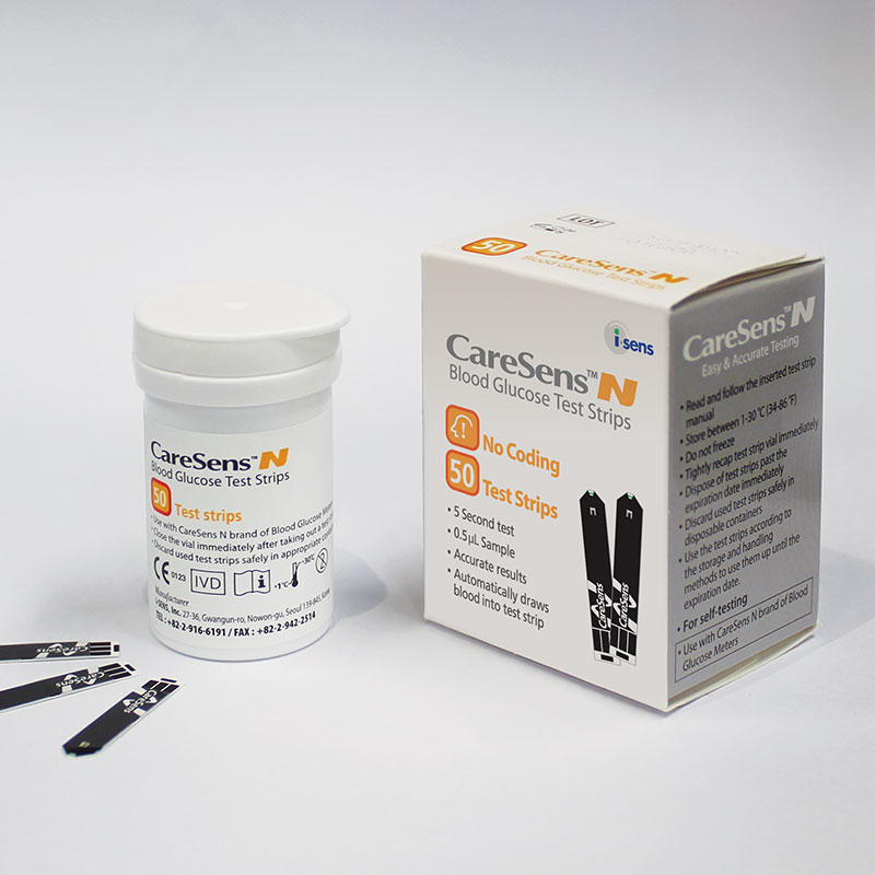 اجزا داخل جعبه دستگاه :دستگاه اندازه گیری قند خون CareSens N – کیف مخصوص دستگاه – نوار تست قند خون CareSens N (25 عددی) – لانست (25 عددی) – قلم خون گیری – باطری (2عدد) – دفترچه راهنما – راهنمای مصور
